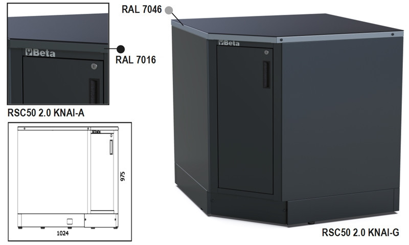 RSC50 2.0 KNAI-G Alsó sarok modul az RSC50 2.0 műhelyberendezés összeállításhoz