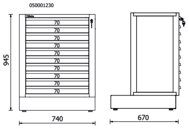 RSC50 2.0 M10 10 fiókos rögzített modul az RSC50 2.0 műhelyberendezés összeállításhoz