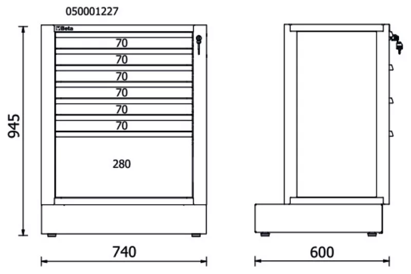RSC50 M7 7 fiókos, rögzített modul az RSC50 műhelyberendezés összeállításhoz