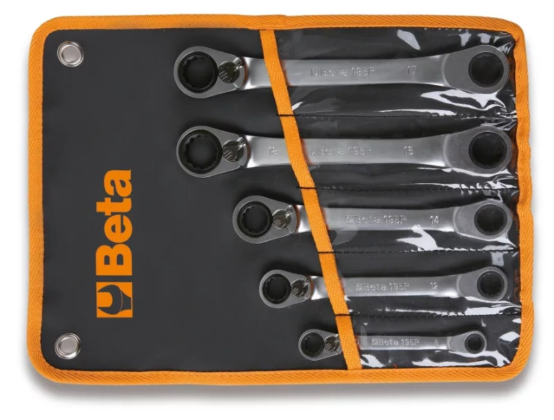 5 részes racsnis 15°-ban hajlított csillagkulcs szerszám készlet műanyag dobozban 195P 8x10-12x13-14x15-16x18-17x19 mm