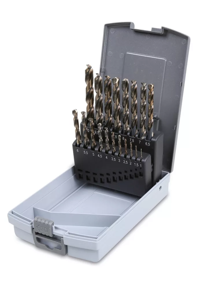416/SP19 19 részes csigafúrószerszám készlet különleges csiszolással, dupla kúpos fejjel, HSS