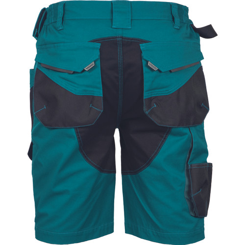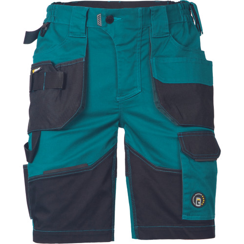 • férfi munka rövidnadrág rugalmas Trifibetex® anyagból • ergonomikus szabás • alacsony, gumírozott derék • tartós tripla varrás a szárakon és az üleprészen • tágas multifunkcionális első zsebek szerszámtartó pánttal • 2 hátsó zseb Oxford erősítéssel • a száron telefontartó zseb tépőzáras zsebfedővel • külön zsebek vonalzónak, késnek, kalapácsnak • egyedi kivitelű repülőzseb • D-gyűrű • szerszámtartó hurok a derékpánton • fényvisszavető részletek