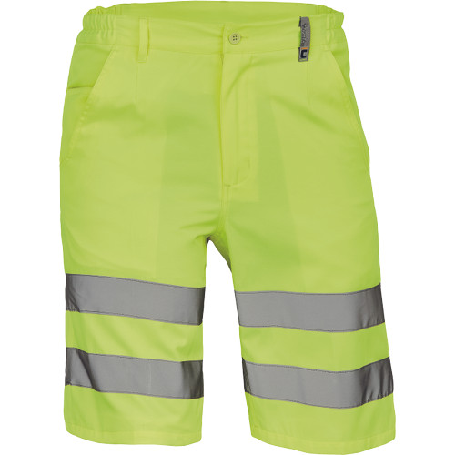 • férfi Hi-Vis rövidnadrág 7 cm széles fényvisszavető csíkokkal • 2 oldalsó zseb + 1 érmezseb • 2 hátsó zseb • rugalmas oldalsó betétek a derékon