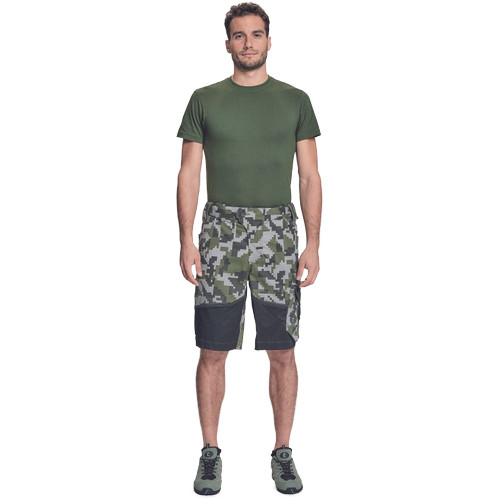 • férfi rövidnadrág innovatív • rugalmas Trifibetex® anyagból digitális terepmintával • 2 ékzseb • hátul 2 tépőzáras foltzseb • bal oldalon nagy multifunkciós zseb • jobb oldalon multifunkciós vonalzó • kés- és ceruzatartó • fém "D" gyűrű • rugalmas derék • fényvisszavető szegés • dekoratív tripla varrás kontrasztos színnel • kalapácstartó