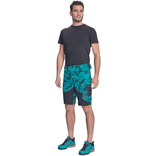 • férfi rövidnadrág innovatív • rugalmas Trifibetex® anyagból digitális terepmintával • 2 ékzseb • hátul 2 tépőzáras foltzseb • bal oldalon nagy multifunkciós zseb • jobb oldalon multifunkciós vonalzó • kés- és ceruzatartó • fém "D" gyűrű • rugalmas derék • fényvisszavető szegés • dekoratív tripla varrás kontrasztos színnel • kalapácstartó