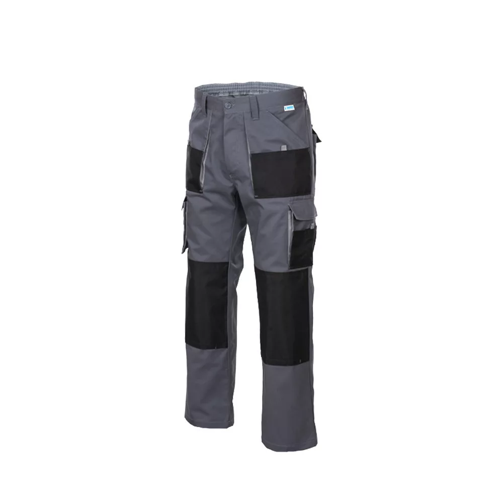 Egyenes szabás, funkcionális kialakítás. - gombos rögzítés - gumírozott hátsó derékrész - két rávarrt zseb - két oldalzseb - zsebfedős farzsebek - térdelőpárnának kialakított térdzsebek kondura erősítéssel - tripla varrás a szárak belső felén és az ülepen