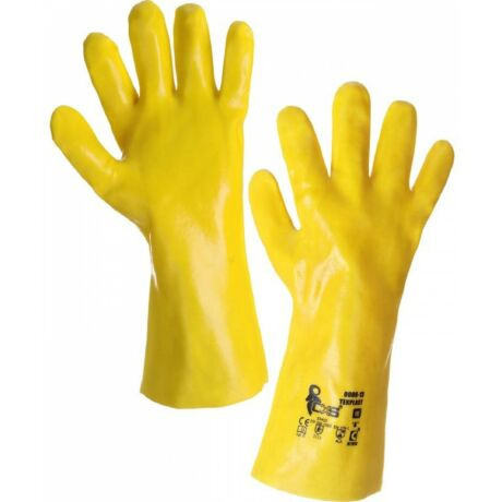 <ul><li>Teljesen PVC-be mártva</li><li>Pamut belső</li><li>Ellenáll anyagoknak, mint: metanol, kénsav, nátrium-hidroxid</li><li>Kesztyű hossza: 35 cm</li><li>Cat. 3.</li><li>EN 420, EN 388 (3111X)<br />EN 374-1/Type A (AKLMPT)</li></ul>