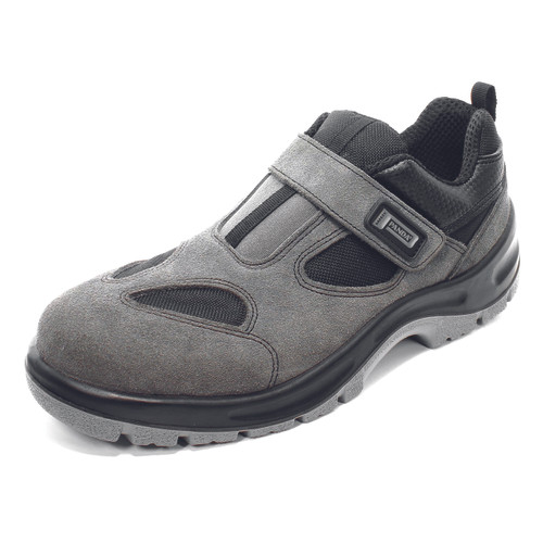 » zárt biztonsági szandál S1 SRC minősítéssel » magas minőségű, szürke velúrbőr felsőrésszel, szellőző szövetbetétekkel » tépőzáras kivitel, amely megkönnyíti a le és felvételt»