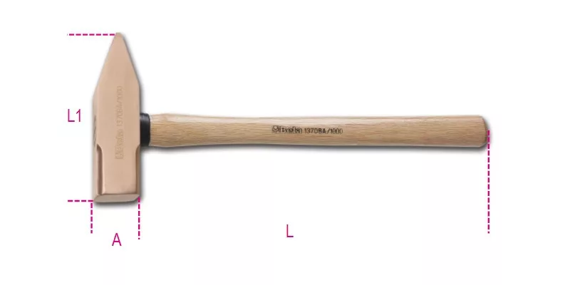 Lakatos kalapács, szikramentes, fanyéllel • Réz-berillium ötvözet (CU-BE) • A Beta szikramentes szerszámokat a BAM (Szövetségi Anyagkutató és Vizsgáló Intézet) a 99/92/EC Európai Irányelvnek megfelelően tanusítja.