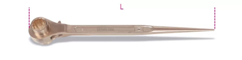 Állványozó csillagkulcs, lapos, speciális fejkiképzés • Réz-berillium ötvözet (CU-BE) • A Beta szikramentes szerszámokat a BAM (Szövetségi Anyagkutató és Vizsgáló Intézet) a 99/92/EC Európai Irányelvnek megfelelően tanusítja.