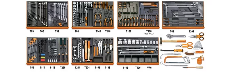 212 szerszámból álló autójavító készlet ABS hőformált tálcában