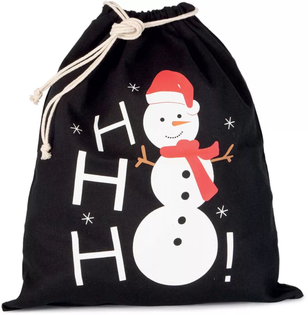 • Pamut zsák húzózsinórral, rányomtatott hóemberrel