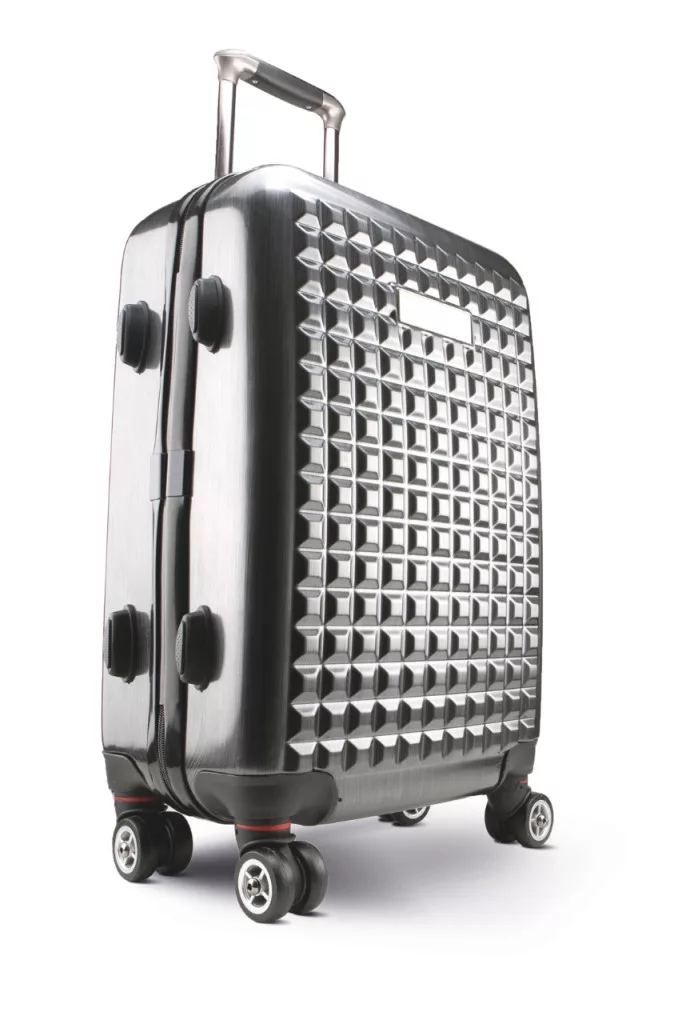 • Masszív, kézipoggyász méretű gurulós bőrönd polikarbonátból