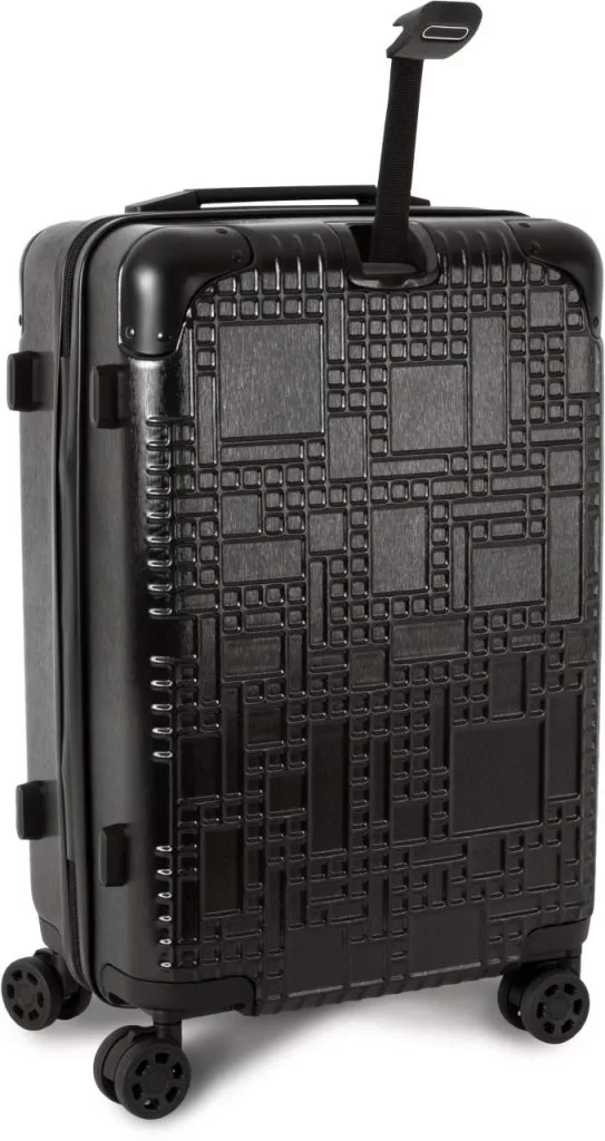• A geometrikus „Geoline” design mellett ez az alumínium gurulós bőrönd 4 bolygósított kerékkel és oldalsó védő lábakkal van ellátva arra az esetre, ha az oldalára döntik