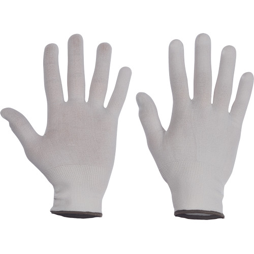 • zsugorított nylonból készült, fehér varratmentes kötött kesztyű rugalmas mandzsettával