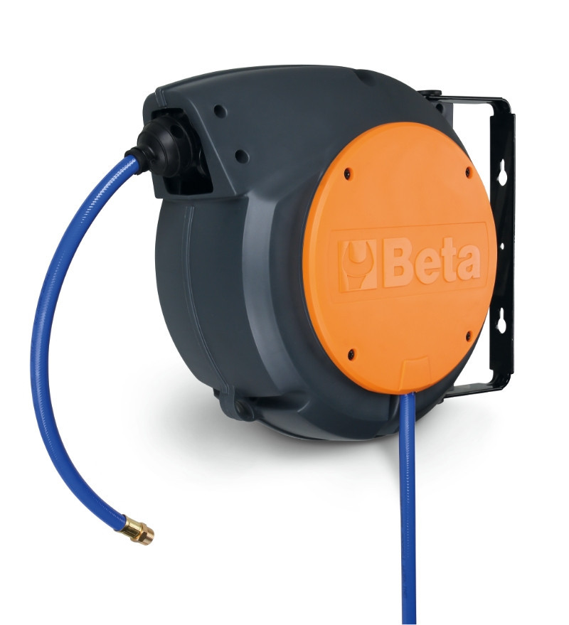 • Max. üzemi nyomás: 15 bar • Fonott poliuretán tömlő • Polipropilén váz • A tömlőt a kívánt hosszban rögzítő szerkezet • A reteszelő mechanizmus kikapcsolható, így a kábel folyamatos visszahúzását teszi lehetővé • Üzemi hőmérséklet tartomány: -5 °C / +50 °C ● 180°-os elforgatható konzollal és kiegészítő gyorscsatlakozó konzollal szállítva