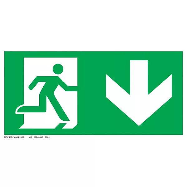 Menekülési út - le, ajtó bal oldalon UV tábla