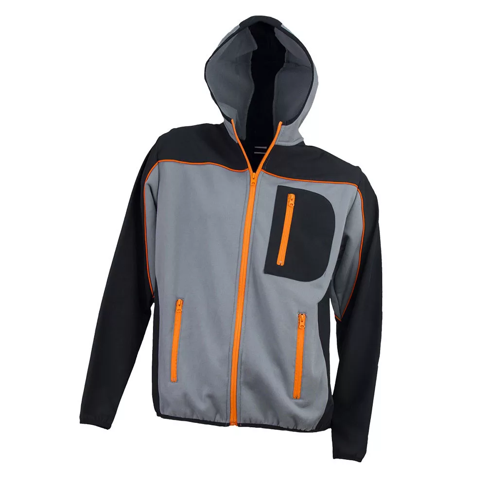 Funkcionális férfi kapucnis pulóver teljes hosszúságú cipzárral. 100% poliészterből készült, amely tartósságot és kényelmes viseletet biztosít. A klasszikus szabást praktikus zsebek és rugalmas passzék egészítik ki, így minden helyzetben kényelmet nyújt.
