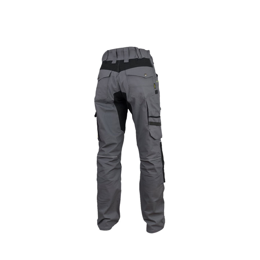 Egyenes szabás, funkcionális kialakítás. - fényvisszaverő elemek - integrált gumibetét a derékrész két oldalán, a tökéletes illeszkedésért - rávarrt, mély első zsebek - zsebfedős oldalzseb - zollstock számára kialakított zseb - rávarrt zsebfedős farzsebek - térdelőpárnának kialakított megerősített térdzsebek - tripla varrás a szárak belső felén és az ülepen