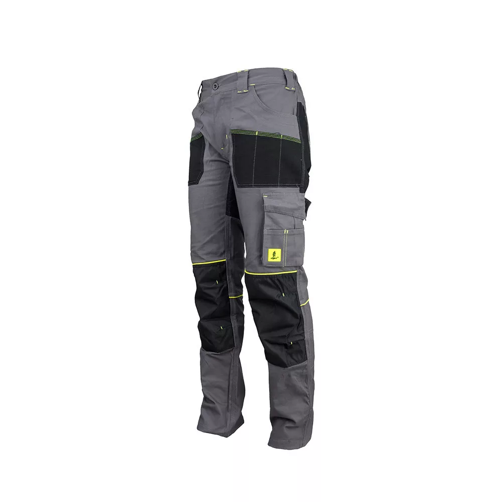 Egyenes szabás, funkcionális kialakítás. - integrált gumibetét a derékrész két oldalán, a tökéletes illeszkedésért - rávarrt, mély első zsebek - zsebfedős oldalzseb - zollstock számára kialakított zseb - rávarrt zsebfedős farzsebek - térdelőpárnának kialakított megerősített térdzsebek - tripla varrás a szárak belső felén és az ülepen