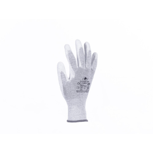 • kötött, varratmentes, antisztatikus, PES kesztyű integrált szénszállal • tenyéren poliuretán mártással • rugalmas mandzsettával