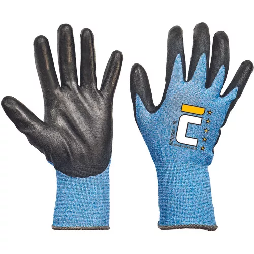 • kötött vágásbiztos védőkesztyű B szintű vágásvédelemmel, PU mártással a tenyéren, rugalmas mandzsettával