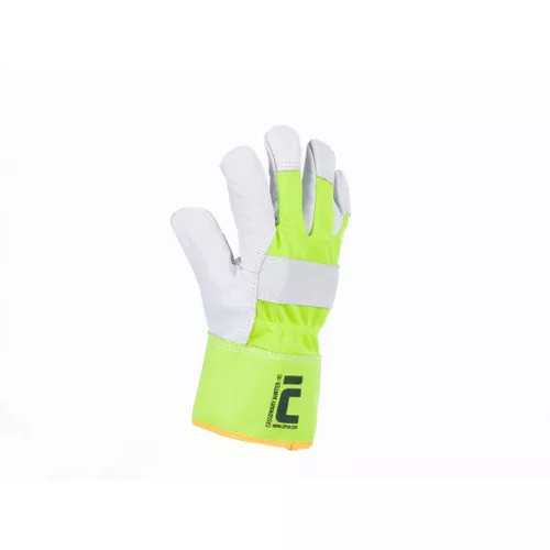 • melegen bélelt kombinált kesztyű • marha színbőr tenyér • poliészter szövet kézfej • merev mandzsetta • figyelemfelkeltő sárga és narancs színekben