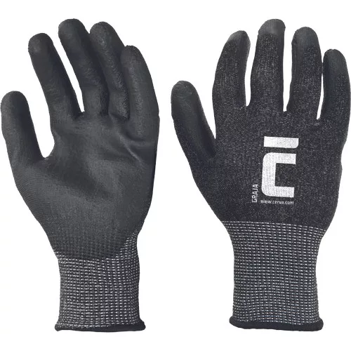 • PU mártott varrat nélküli, kötött kesztyű • C szintű vágás elleni védelemmel • tűfinomság 13 GG