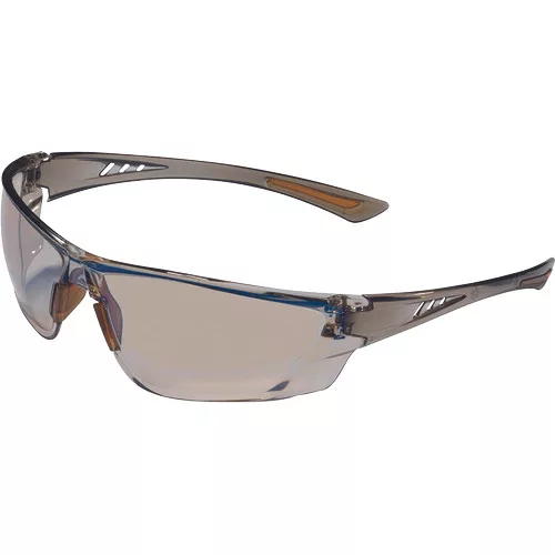 »Könnyű, 22 g-os védőszemüveg széles látómezővel, amely optimális kényelmet biztosít az egész napos viseléshez. Ívelt lencse, széles látómezővel, fejformát követő, csúszásmentes szár, állítható, csúszásmentes orr-rész, oldalirányú védelem.