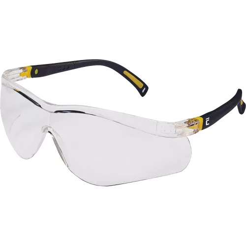 »27 grammos, polikarbonát látómezős szemüveg állítható hosszúságú és dőlésszögű szárral, sportos kivitelben. A látómező karcálló és páramentes , EN 166 sz. szabvány szerinti F osztály - kis energiájú becsapódás elleni védelem, 1. optikai osztály, a sárga látómező az EN 170 sz. szabvány szerinti, UV sugárzás ellen védő szűrővel rendelkezik.