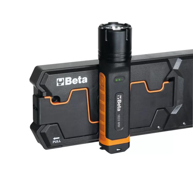 1 LED zseblámpa intenzív fényerővel, tölthető, vezeték nélküli • Négy fényerősség beállítás: LED SMD, 1000 - 400 - 30- 5 Lumen • Újtratölthető elem: 3.7V 2600 mAh, 9.62 Wh Li-ion • Két töltési mód: 1839BRE vezeték nélküli töltőállomás USB-C kábellel • Töltési idő: vezeték nélküli töltő állomáson: 6 óra USB-C kábellel: 4 óra • Akkumulátor üzemidő: 2-200 óra • 3-LED akkumulátor töltöttségi szint kijelző • Mágneses hátoldal • IP68 • IK07 • USB-C kábellel szállítva