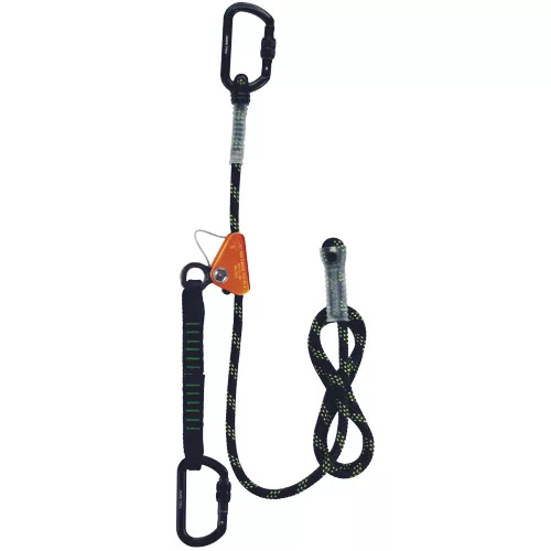 » FS600 Grab-On 2 csatlakozóval ellátott rögzítőkötél, amelyek közül az egyik a szerkezeten lévő rögzítési ponthoz, a másik pedig a teljes testhevederekhez csatlakozik » kötélfogóval rendelkező rozsdamentes acél zuhanásgátló, amely lehetővé teszi a felhasználó számára, hogy biztonságosan mozogjon a kötél mentén, köszönhetően az automatikus blokkoló rendszernek