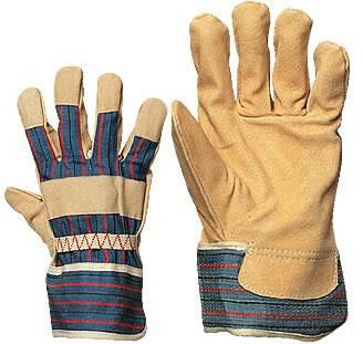 250 Színsertés bőr munkavédelmi kesztyű vászon kézháttal, rakodókesztyű