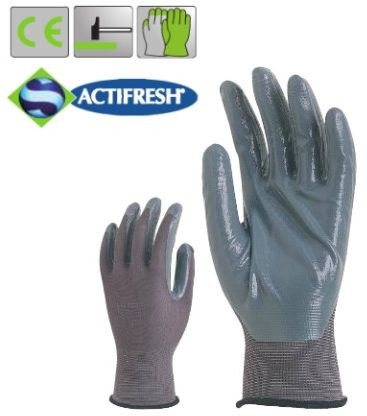 Poliamid szerelőkesztyű, fekete nitrillel mártva, ActifreshŽ