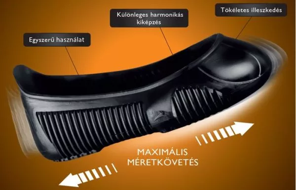 - Különleges harmonikás kiképzése segít abban, hogy az elérhető 4 méret (S-XL) szinte az összes cipőméretet (34-48) magába foglalja.