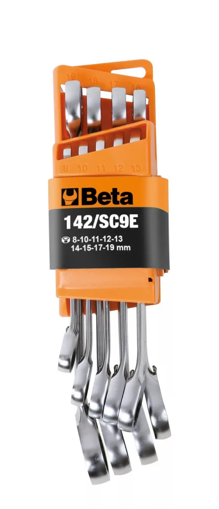 142/SC9I-E Csillag-villáskulcs készlet, 9 darabos, átváltós racsnival, kompakt tartóval