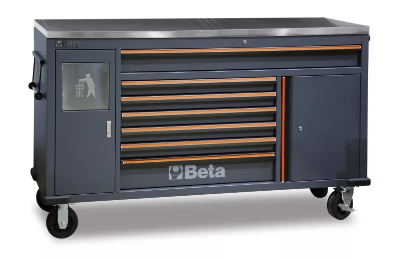 7 fiókos szerszámkocsi beépített hulladéktartóval
