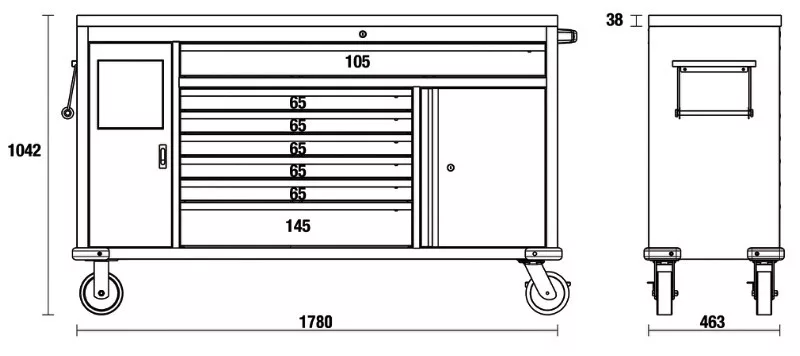 5 fiók, 65 mm magas