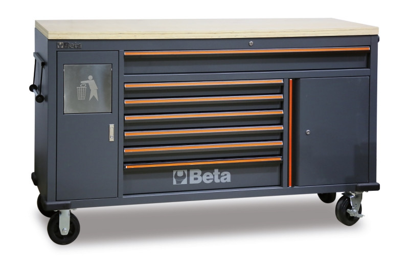 7 fiókos szerszámkocsi beépített hulladéktartóval