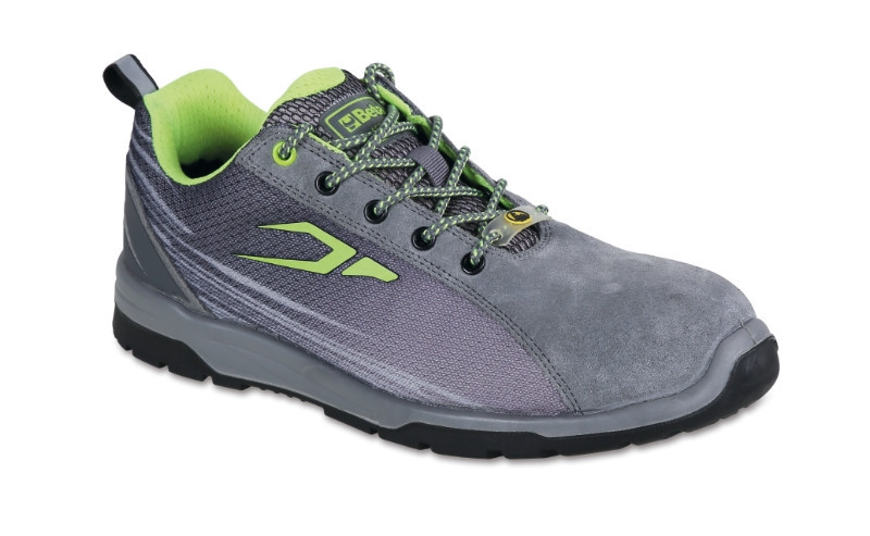 Jól szellőző hálós hasítottbőr cipő, a sarok stabilitását segítő alátámasztással 43