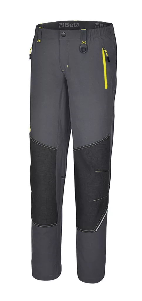 Anyag:90% nejlon, 10% elasztikus szövet, 140 g/m2 Design:• Slim fit • Négy irányban nyújtható szövet a nagyobb kényelemért • A megerősített térd- és ülőrész tartós viseletet biztosít • Elasztikus derékrész • Két zseb a derékrészen és egy hátsó zseb, mindegyik cipzárral • Behúzós lábszár rész • Fényvisszaverő betétek Szín:Szürke, sárga betétekkel XS, S, M, L, XL, XXL, XXXL 46, 48, 50, 52, 54, 56, 58