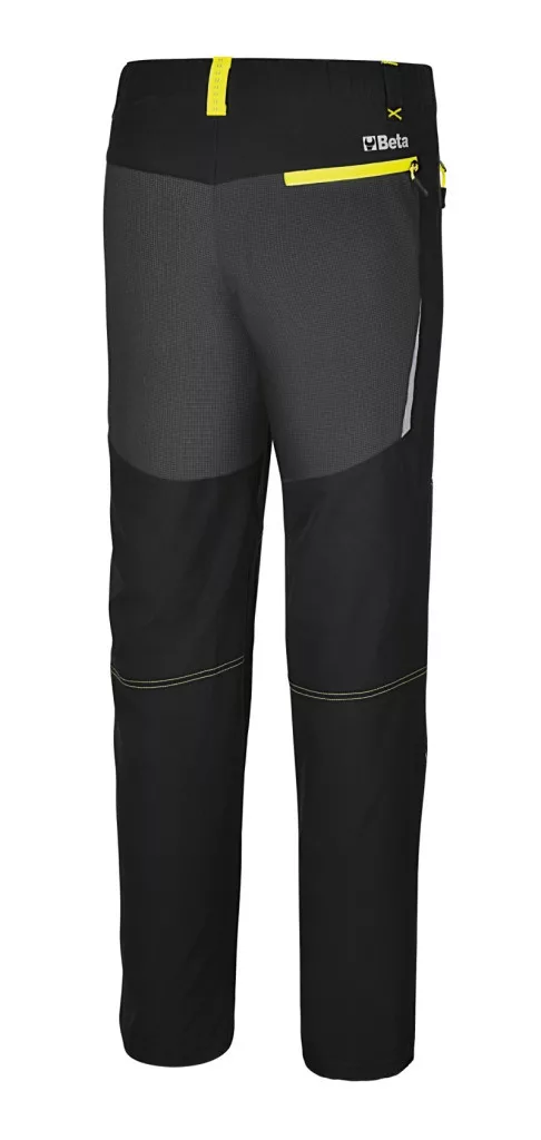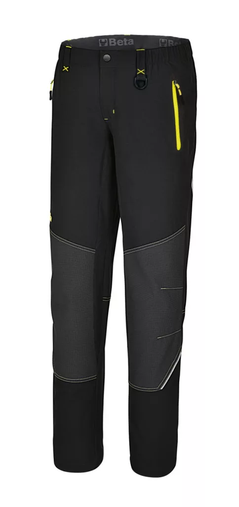 Anyag:90% nejlon, 10% elasztikus szövet, 140 g/m2 Design:• Slim fit • Négy irányban nyújtható szövet a nagyobb kényelemért • A megerősített térd- és ülőrész tartós viseletet biztosít • Elasztikus derékrész • Két zseb a derékrészen és egy hátsó zseb, mindegyik cipzárral • Behúzós lábszár rész • Fényvisszaverő betétek Szín:Fekete, sárga betétekkel XS, S, M, L, XL, XXL, XXXL 46, 48, 50, 52, 54, 56, 58