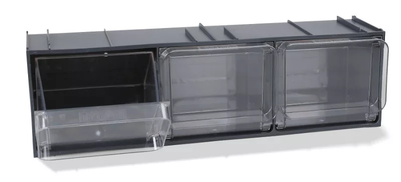 • Külső PP keret • PET alkatrésztartó fiókok • Rakatolható • Belső fiók méret: 160x107x105h mm