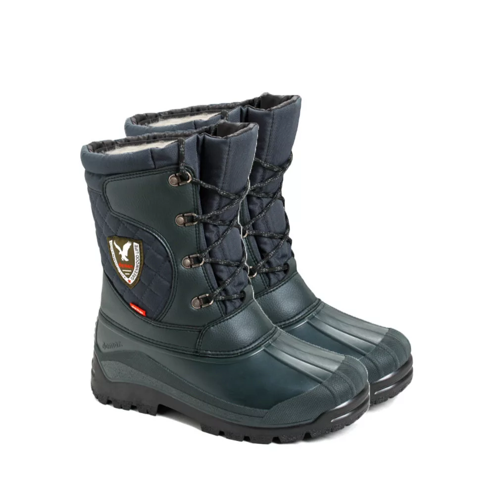 Vízálló, magasszárú, fűzős vadászcsizma.