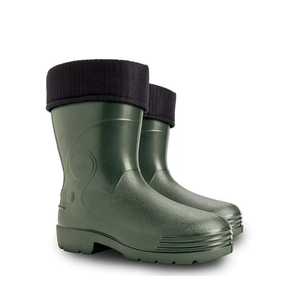 Rövid szárú pehelykönnyű EVA csizma zöld színben, kivehető - mosható béléssel, hőszigetelő hatás akár -30 °C-ig.