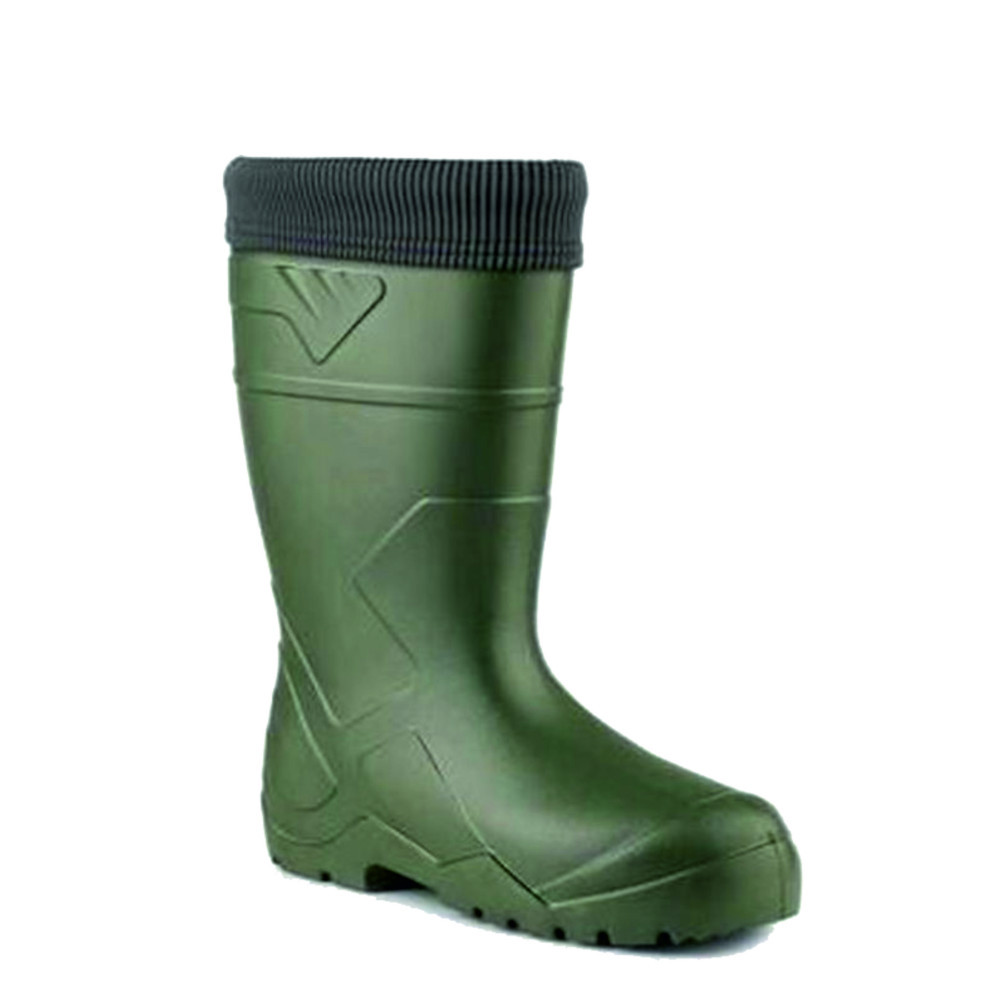 Hosszú szárú pehelykönnyű EVA csizma zöld színben, kivehető - mosható béléssel, hőszigetelő hatás akár -30 °C-ig.
