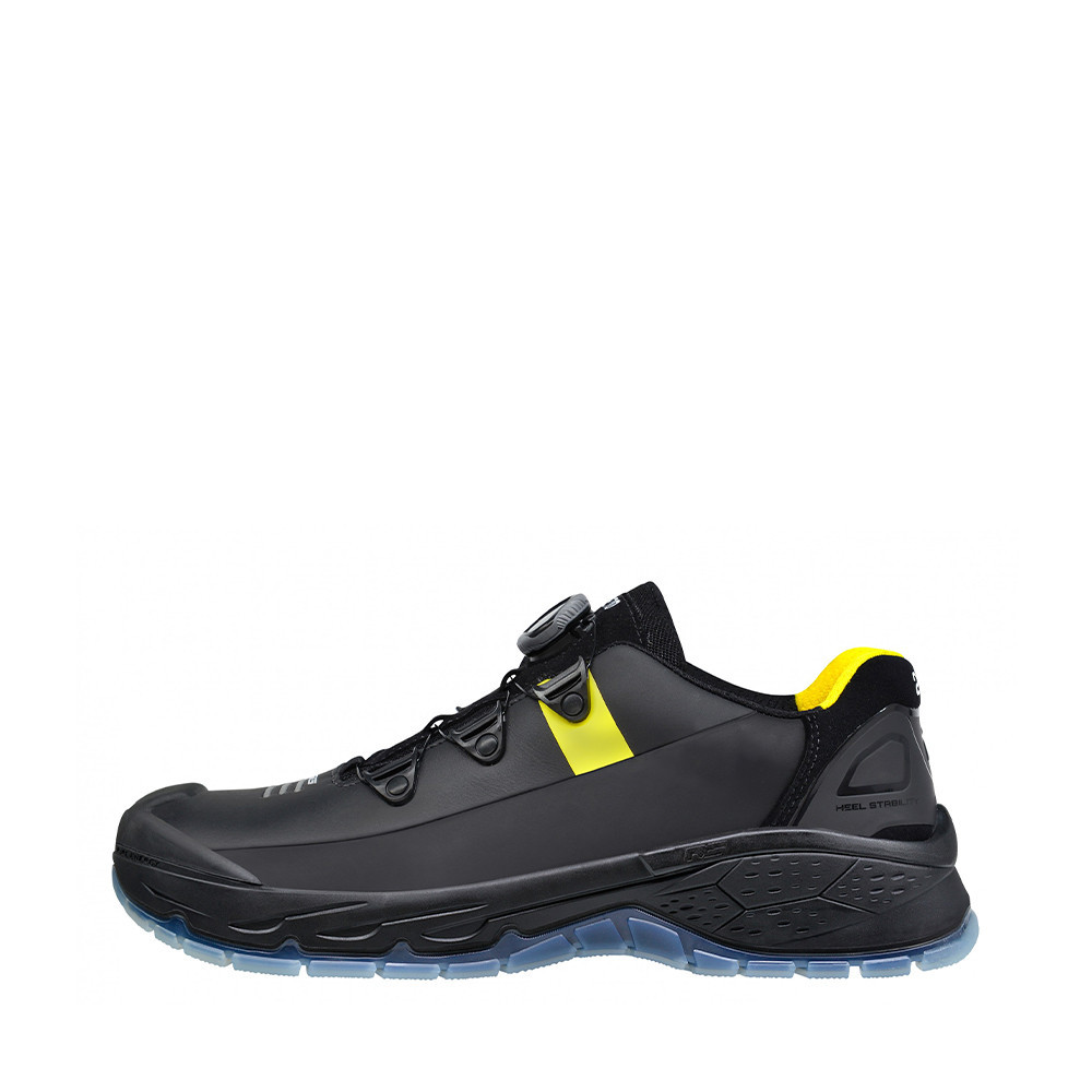 Sportos megjelenésű munkavédelmi cipő, acél orrmerevítővel és T-527-es kevlár talplemezzel. Az egyedi mikroszálas bőr felső rész teljesen vízhatlan, kifejezetten ellenálló. A cipő orrészén speciális kialakítású orrborítást találunk, amely tovább növeli a lábbeli élettartamát. A gyors és egyszerű fel- és levételről BOA Fit fűzőrendszer gondoskodik.