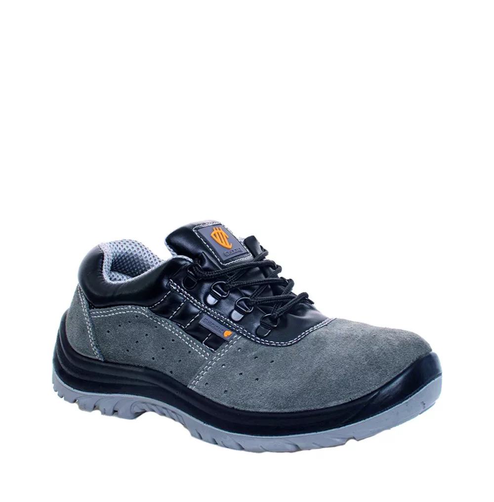 Talp:csúszásmentes, olajálló, antisztatikus, energiaelnyelő sarok, kétrétegű PU/PU, a külső talp keményebb, a belső puhább