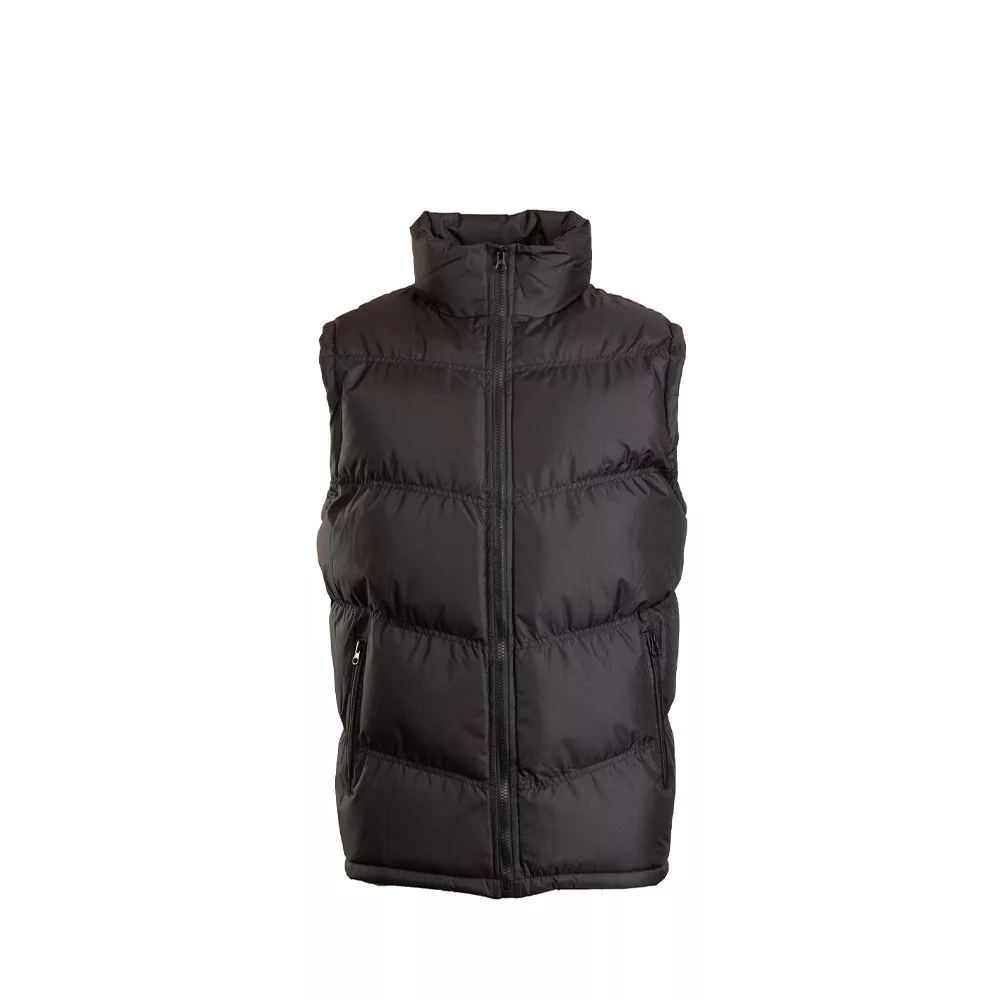 Egyenes szabású, funkcionális kialakítású pufi mellény. - cipzáras záródás - álló gallér - két cipzáras első zseb - poliészter bélés