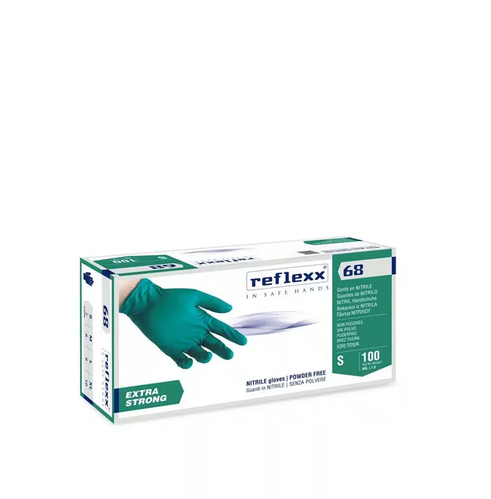 Reflexx R68 erősített egyszerhasználatos nitril kesztyű - zöld